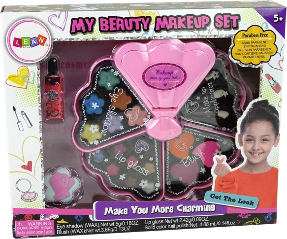 Ta kozmetični komplet v obliki školjke je idealen za male začetnice ličenja. Vsebuje šest senčil za oči, tri rdečila za lica, osem bleščil za ustnice, lak za nohte in čopiče za nanos. Vsaka plast skriva edinstvene kozmetične možnosti, ki omogočajo dekletom, da ustvarijo svoj slog. Zaradi svoje velikosti je komplet enostaven, da ga imajo vedno pri roki.
