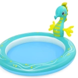 Napihljivo otroško vodno igrišče BESTWAY v morskih barvah ponuja varno osvežitev in veliko zabave v vročih dneh. Plitek bazenček in prijazen motiv morskega konjička z vodno prho vabita k igri in nežnemu osveženju, zato je odlična izbira za najmlajše od 2 let.