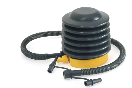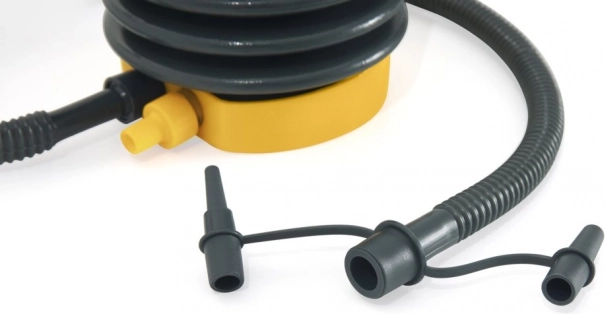 Priložena sta fleksibilna cev in komplet treh zamenljivih nastavkov, zato brez težav napihnete napihljive blazine, bazenske igrače, žoge in manjše čolne. Prostornina 500 cm³ (0,5 l) na potisk omogoča hitro in učinkovito dovajanje potrebnega zraka.