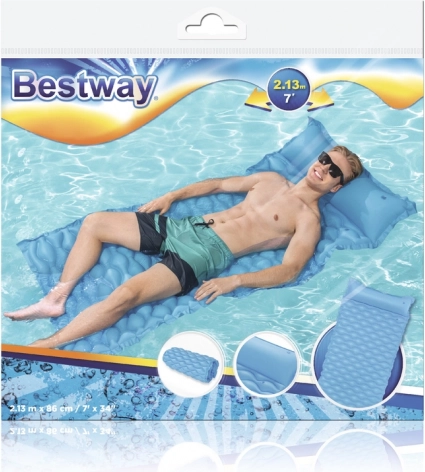 Uživajte v poletju z udobno napihljivo blazino BESTWAY. Zahvaljujoč priročnemu zložljivemu dizajnu jo zlahka vzamete na plažo, k jezeru ali k domačemu bazenu. Prožna površina in vgrajen vzglavnik nudita prijetno oporo telesu, dvojkomorna izvedba pa stabilnost na vodni gladini.