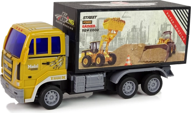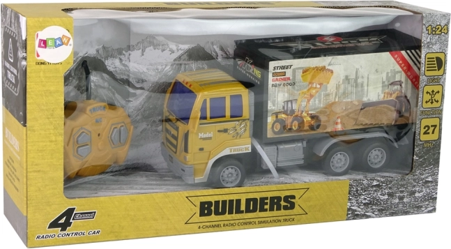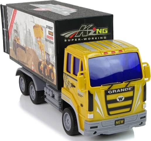 Rumeni daljinsko vodeni gradbeni tovornjak otrokom omogoča, da upravljajo svoj lasten gradbeni stroj. S črnim kontejnerjem in izrazitimi nalepkami je ta model avtentičen ter otroku omogoča simulacijo resničnega gradbišča. Upravljanje na 27 MHz omogoča vožnjo naprej, nazaj, levo in desno, dopolnjeno s svetlobnimi učinki, ki povečajo doživetje pri igri.