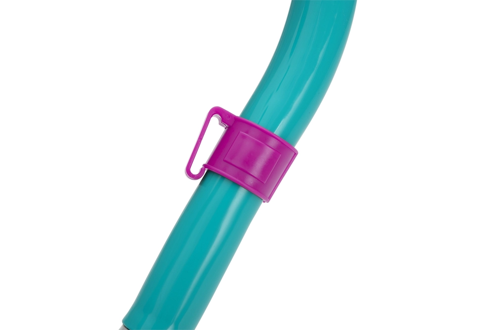 Dihalka je opremljena z mehkim silikonskim ustnikom za udobno dihanje in zgornjo zaščito pred vdorom vode. Praktičen sponka za pritrditev na masko vse drži na mestu, da je gibanje v vodi čim bolj naravno.