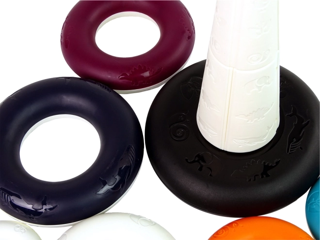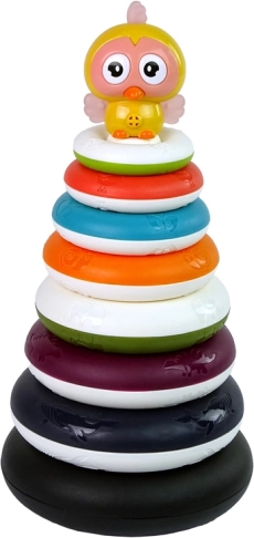 Zložljiva piramida je opremljena s živimi barvami in živalskimi motivi, ki pomagajo pri prepoznavanju barv in izboljšujejo čutno zaznavanje otroka.