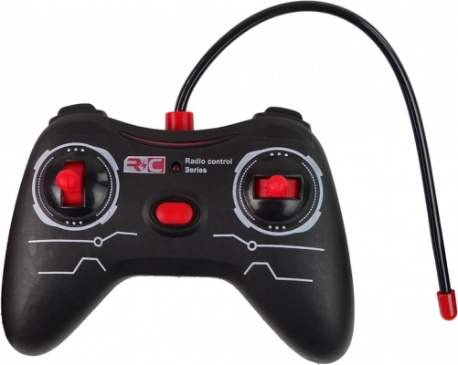 Daljinski upravljalnik vozila R/C je sestavljen iz črnih elementov v kombinaciji z rdečimi gumbi.