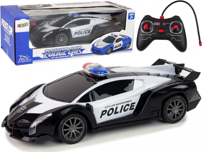 Predstavljeni avto v značilni beli in črni barvi bo spodbujal otrokovo domišljijo in omogočil ustvarjalno igro. Svetlobni učinki dodatno prispevajo k realističnosti igrače.
