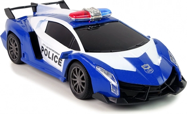 Podajte se v policijski lov s športnim RC vozilom v modro-beli izvedbi. Realistični LED svetlobni signali in dinamičen videz spodbujajo otrokovo domišljijo, medtem ko ergonomski upravljalnik omogoča tekoče in natančno vodenje. Odlična izbira za darilo – zapakirano v darilni škatli z okencem in z CE certifikatom.