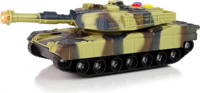 Ta podrobno izdelan tank s kamuflažnim vzorcem otrokom prinaša avtentično izkušnjo vojaške tehnike. Vrtljiva cev, gumijaste gosenice in osvetljena cev ustvarjajo vtis pravega vozila. Zaradi kompaktnih mer lepo sede v roko in je pripravljen na akcijsko igro doma ali na poti.