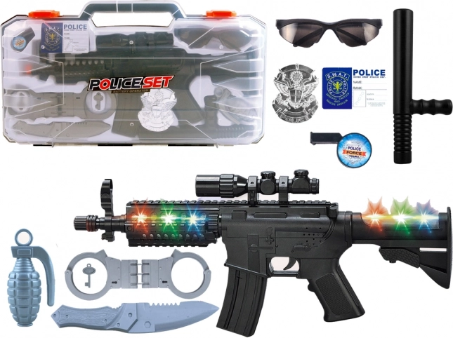Komplet vsebuje 9 kosov policijske opreme + kovček