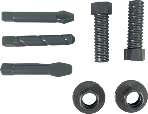 Del seta so tudi vijaki, matice in zamenljivi svedri, s katerimi lahko otroci ponavljajoče vijajo in odvijajo ter vadijo natančnost in potrpežljivost. Igrača podpira razvoj ročnih spretnosti in domišljije v varnem okolju domače delavnice.