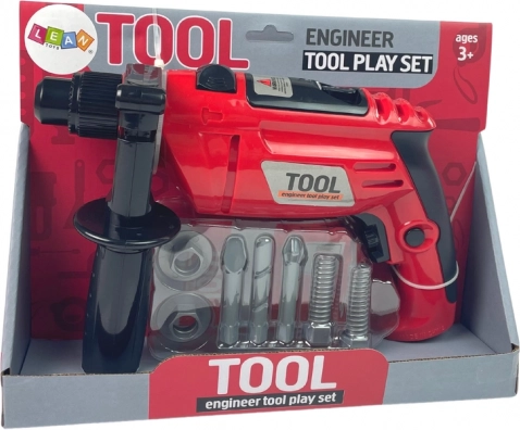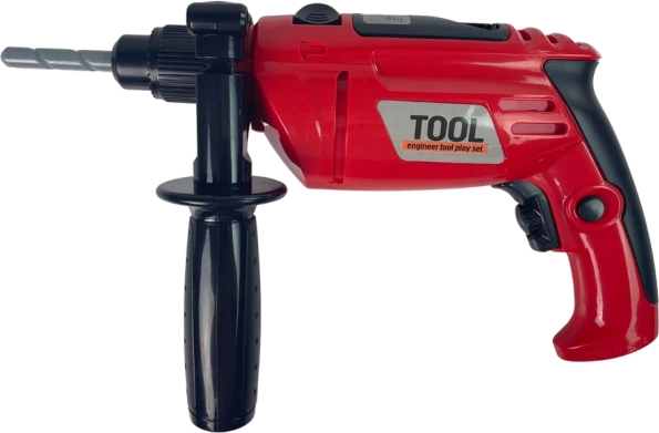 Otroški vrtalnik je zasnovan za varno in privlačno igro. Ob pritisku na sprožilec se zavrti in oddaja realističen zvok, zato se otroci počutijo kot pravi mojstri. Stranski ročaj zagotavlja zanesljivejši oprijem, medtem ko je plastična izvedba lahka in trpežna.