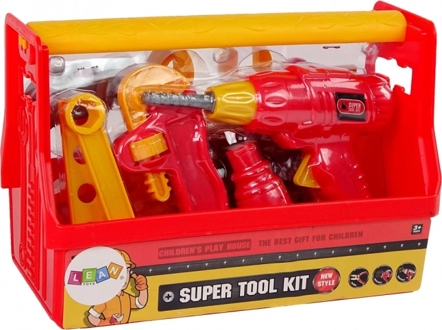 Celovit otroški komplet za male mojstre v praktičnem kovčku. Vsebuje vrtalnik za majhne roke, izvijač, kladivo, klešče, francoski ključ, primež in povezovalne dele. Lahek plastičen material, izrazita rdeča barva ter možnost, da vse shranite v prenosen kovček, podpirajo razvoj motorike in kreativno igro. Primerno od 3 let, s certifikatom CE.