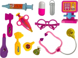 Stetoskop s srčkom ob prislanjanju zasveti z rdečo lučko, ki nakazuje »pregled«. Nato lahko mali zdravniki uporabijo »injekcijo«, predpišejo »zdravila« in poskrbijo za hitro okrevanje domačega pacienta. Vsi deli so iz kakovostne plastike, brez ostrih robov in jih je enostavno pospraviti nazaj v kovček.