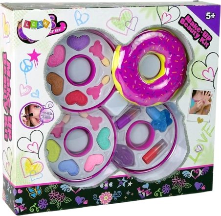 Set je shranjen v čudoviti embalaži v obliki roza krofa z barvnim posipom, kar poveča privlačnost in veselje pri uporabi.