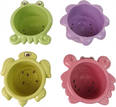 Del kompleta so plastične skodelice v obliki morskih živali z odprtinami, ki omogočajo opazovanje različnih tokov vode.