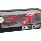 V pakiranju je gasilsko vozilo, helikopter in 6 kart z različnimi vozili. Odlična zabava za otroke od treh let naprej, igrača je v skladu s standardom EN71.