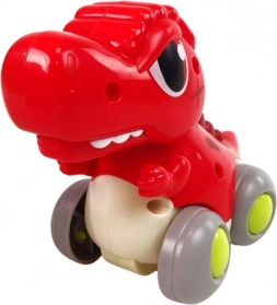 Začnite zabavo z veselým T‑Rexom! Ta rdeči dinozaver z belim trebuščkom ima frikcijski pogon – pritisnite ob površino, spustite in opazujte, kako se požene naprej. Premikajoči se gobček med vožnjo doda igri še več veselja in dražljajev.