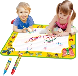 Velika vodna risalna preproga je izjemna zaradi svoje enostavne funkcije in neomejene zabave. Dovolj je, da navlažite flomaster, s katerim lahko rišete vzorce, ki po kratkem času sami izginejo, zato lahko preproga znova in znova uporabite. Je lahka, kompaktna in vodoodporna, zato idealna za uporabo ne le doma, ampak tudi v parku ali na počitnicah.