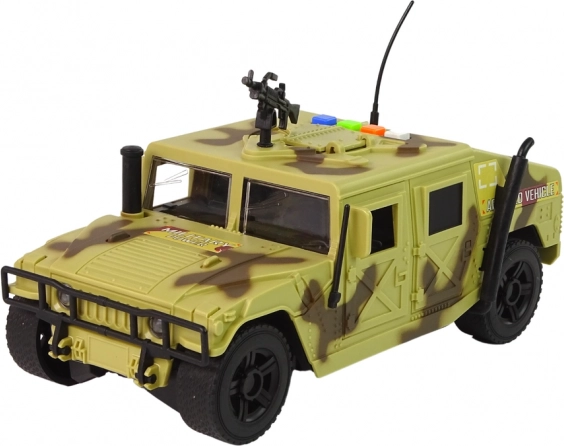 Ustvarjeno za male vojake, ki obožujejo vojaško tehniko. To vojaško vozilo se ponaša s širokim trupom in realističnim dizajnom, ki vključuje strešno pištolo, ki posnema pravo vojaško vozilo. Oživite igro z zvočnimi učinki, ki vključujejo trobljenje, streljanje in zagon motorja, spremljano s sprednjimi lučmi, kar povečuje avtentičnost igre.