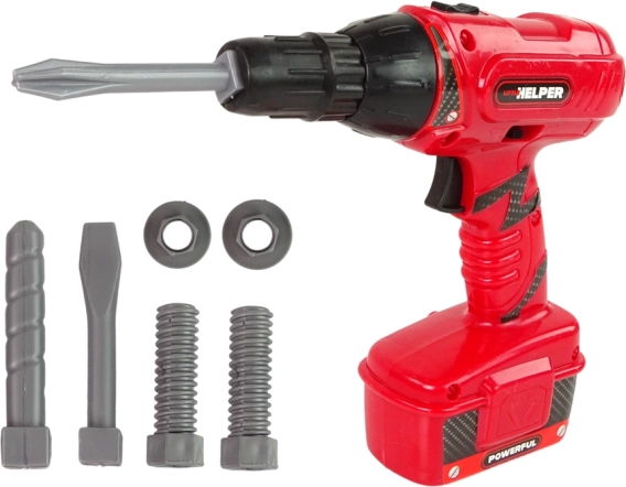 Vrtalnik z zamenljivimi nastavki simulira pravo vrtanje in spodbuja motoriko otroka.
