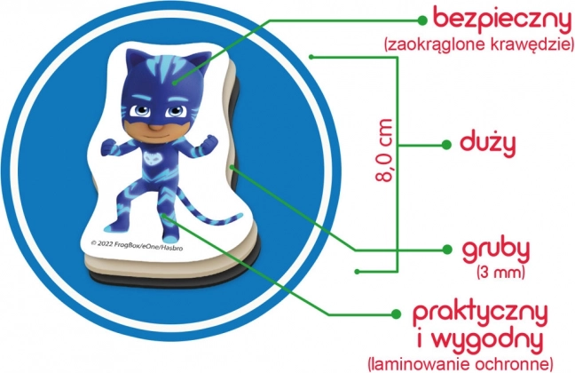 S tem igrivim setom magnetov z motivi priljubljenih junakov PJ MASKS lahko otroci po svoji domišljiji ustvarjajo neskončne zgodbe. Magneti so lahki, trpežni in zaradi zaobljenih robov varni tudi za manjše roke. Odlično se podajo na hladilnik, magnetne table in kovinske površine v otroški sobi.