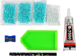 Vsebina paketa vključuje vse potrebno za ustvarjanje in dekoracijo vašega jelena, vključno s kristali in lepilom.