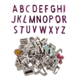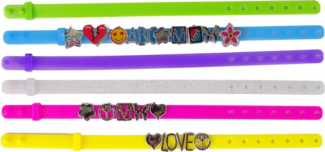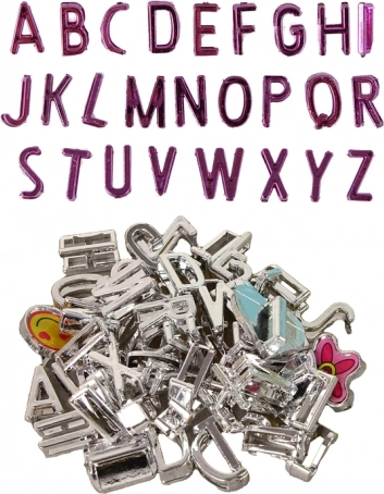 Vsebuje črke od A do Ž, različne oblike in 6 zapestnih trakov z enostavnim zapenjanjem.