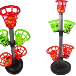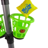 Velika prednost je nastavljiva višina: stojalo je mogoče nastaviti od 75 cm do 100 cm. Gumbi, s katerimi so koši pritrjeni, omogočajo nastavitev na katerikoli višini. Osnova ima odprtino z zapiralom – za ustrezno obtežitev stojala med igro. Nalijte vanjo vodo ali nasujte pesek in igrajte brez skrbi, da bi se koš prevrnil.