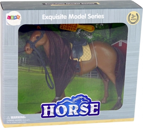Figurica konja je zasnovana tako, da zvesto zajame resnične podrobnosti, vključno z grivo, sedlom in uzdo, kar omogoča igrivo pripravo na sprehode in tekmovanja.