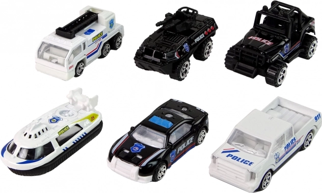 Zaradi svoje preproste funkcionalnosti bodo ti avtomobilčki navdušili vsakega malega pustolovca in spodbudili njegovo domišljijo. Ta komplet vsebuje skupaj 6 različnih policijskih vozil, kar omogoča pripravljenost na katerokoli akcijo. Za vašega otroka je tu džip za terenske posredovanja ali motorni čoln, če se bo zločin dogajal ob vodni površini.