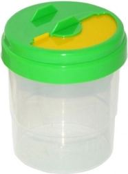 Zaradi prozornega telesa zlahka preverite nivo vode, barvni pokrovček pa pomaga razlikovati lončke za različne barve ali tehnike. Lahek, trpežen in enostaven za čiščenje – popoln dodatek za akvarel, tempera barve in gvaš.