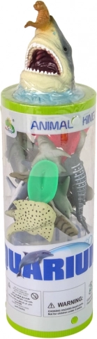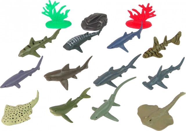 - 12 kos figuric morskih živali (morski psi, skati), skala, 2× vodna rastlina