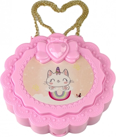 Rožnata embalaža z motivom samoroga in srčastim ročajem razveseli vsako malo lepo in hkrati praktično pospravi vse dodatke.