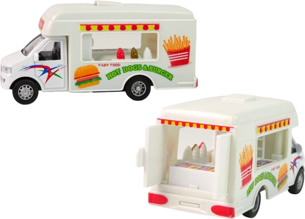 V kompletu najdete dva modela kamperjev. Eden deluje kot lodziarnia, drugi kot fast-food. Postanite voznik, ki razveseli vsakega otroka s slastno hrano. Kamperji so beli, opremljeni z zna0dilnimi nalepkami za vsak model.