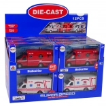 Modeli reševalnih vozil v kompletu predstavljajo odličen dodatek za vsakega malega ljubitelja avtomobilčkov. V pakiranju najdete rdečo in belo različico, obe s tipičnimi nalepkami in napisi, ki jih otroci zlahka prepoznajo. Zahvaljujoč vztrajnostnemu pogonu je dovolj vozilo povleči nazaj in spustiti, da se zapelje naprej.
