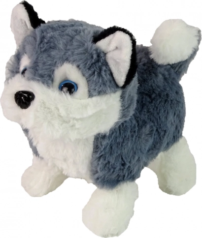 Interaktivni plišasti pes Husky: hodi, maha z repom, odpre gobček in oddaja zvoke. Mehak spremljevalec za otroke od 3. leta. Napajanje 2× AA.