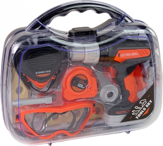 Celoten komplet orodja je shranjen v praktičnem kovčku. Vsebuje plastična orodja, vključno z vrtalnikom na baterije, ki se po pritisku na gumb vrti in oddaja realistične zvoke. Za varnost pri igri so del kompleta zaščitna očala in maska. Najdete tukaj tudi majhen meter in žago za natančno delo. Vsi deli so zasnovani tako, da pomagajo otrokom učiti se in vaditi ročne spretnosti.
