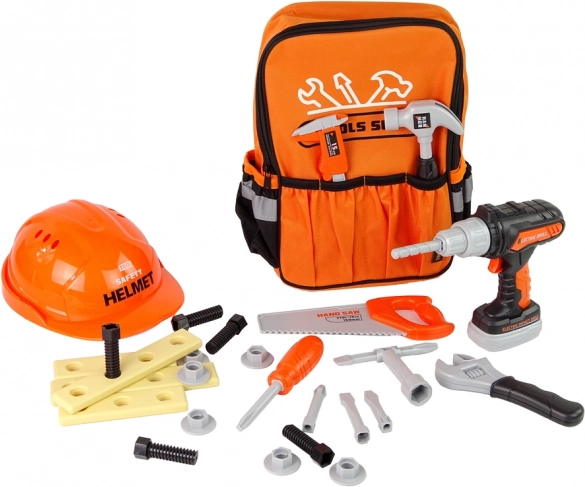 Otroški komplet orodja z nahrbtnikom in čelado je idealen za vsakega malega mojstra, ki želi posnemati odrasle. Ta set vsebuje vsa potrebna orodja, ki jih lahko mali obrtnik potrebuje. Vse je izdelano iz trpežne plastike, ki je varna za otroške roke.