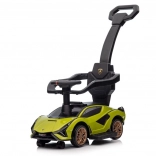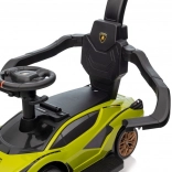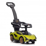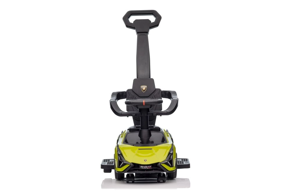 Ta poganjalec, navdihnjen z legendarno športno ikono LAMBORGHINI, izstopa z izrazitim dizajnom, robustno izdelavo in praktičnimi rešitvami za vsakodnevno uporabo. Zahvaljujoč vodilnemu ročaju lahko starši enostavno in varno manevrirajo, medtem ko zaščitna prečka in stopalke zagotavljajo stabilen sedeč položaj tudi za mlajše otroke.