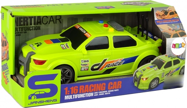 Vstopite v svet hitrosti in zabave z dirkalnim avtom v merilu 1:16. Po pritisku na gumb predvaja zvok zagona motorja in dinamično melodijo, hkrati pa se prižgejo svetlobni učinki. Dovolj je, da avto potisnete, in se bo zahvaljujoč inercialnemu pogonu odpeljal brez zapletenega upravljanja.