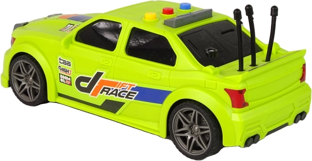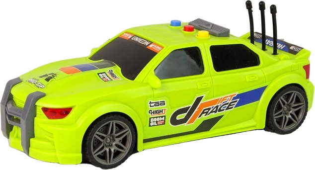 Neon zeleno ohišje z atraktivnimi nalepkami »Drift Race«, športna platišča in nizek profil dajejo avtomobilu avtentičen dirkalni videz, ki otroke takoj pritegne.