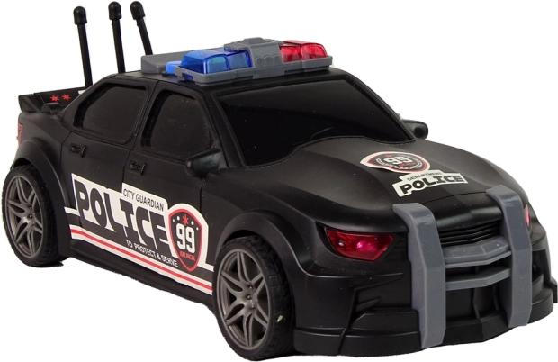 Vstopite v svet policijskih misij s črnim športnim vozilom, ki že na prvi pogled navduši s podrobno izvedbo, utripajočimi lučmi in napisi POLICE. Realistični zvoki zagona motorja in sirene otroke potegnejo v igro in spodbujajo njihovo domišljijo. Igrača je odlična za samostojno ali skupno zabavo.