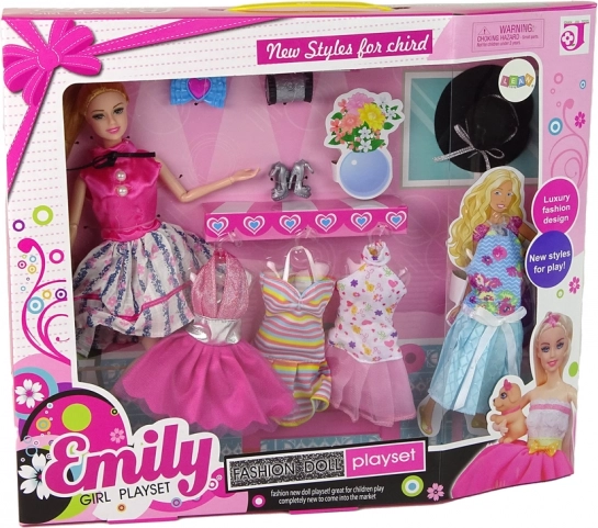 Punčka Emily bo razveselila vsako malo stilistko. Ima eleganten videz z rožnatim topom in razširjenim cvetličnim krilom, ki ga dopolnjujejo črne salonarji. Zahvaljujoč gibljivim sklepom jo lahko preprosto nastavite v različne poze. Set vključuje več oblek in dodatkov, zato lahko vsak dan izgleda drugače.