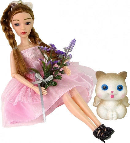 - Punčka Emily, mucka, šopek cvetlic