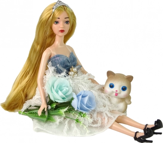 V kompletu je mehka mucka in dekorativni cvetovi, ki širijo možnosti igre in naredijo punčko za idealno darilo.