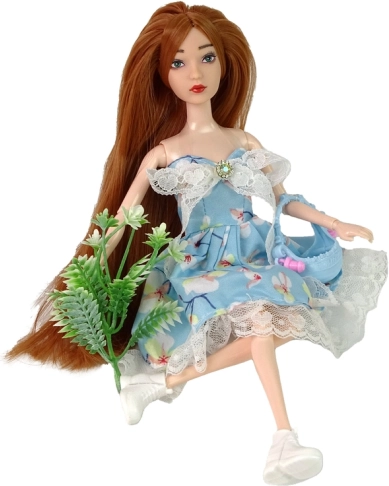 Punčka Emily prinaša v igro svežo pomladno atmosfero. Dolgi rdeči lasje so popolni za učenje pletenja kit in kreativne pričeske, medtem ko zelene oči punčki dajejo edinstven izraz. Modra obleka z nežnim cvetličnim potiskom, srčkano čipko in prikupno pentljo poudari njen slog. Bele superge dodajo ležeren pridih vsakemu pustolovščinskemu dnevu.