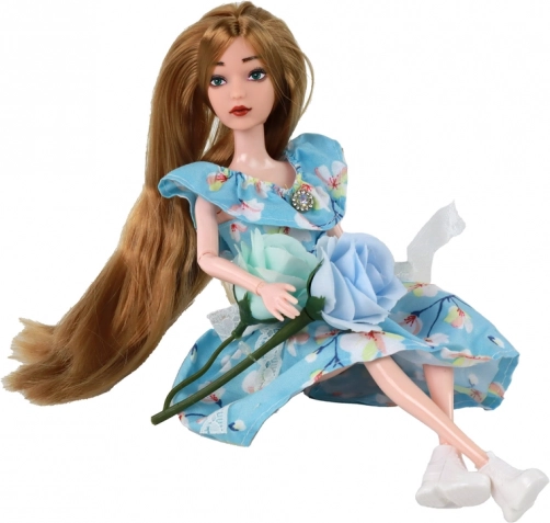 Ljubka punčka Emily z dolgimi, česljivimi lasmi in modro cvetlično obleko bo očarala vsako malo princesko. Ima zelene oči, nežen make-up in elegantne bele čeveljčke. Priloženi so tudi cvetlični dodatki za popoln slog. Odlično darilo za otroke od 3. leta, ki spodbuja ustvarjalno igro in domišljijo.