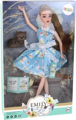 Punčka Emily (30 × 7 × 4 cm) je nežna spremljevalka za ustvarjalno igro. Ima dolge lase v odtenkih temne blond, ki jih je mogoče enostavno česati in krasiti, zelene oči ter nežen make-up za realističen videz. Oblečena je v čudovito modro obleko s cvetličnim vzorcem, čipko, pentljico in ovratnikom, ki jo dopolnjuje droben »diamantni« detajl pri vratu ter bele čeveljčke.
