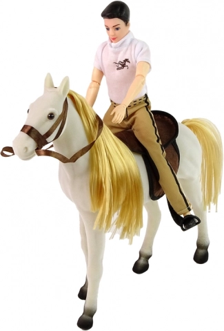 Odkrijte svet pustolovskih iger s to jahalno punčko in belim konjem! Popoln komplet za vsakega malega navdušenca nad konji, ki širi možnosti igre in razvija domišljijo. Igrača vključuje punčko z upogljivimi udi za različne igralne položaje in stajliš oblačilo, ki popolno posnema jahalno modo. Beli konj iz prijetnega materiala ima realističen videz, vključno s sedlom in uzdo.
