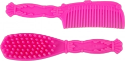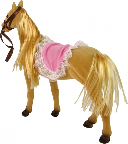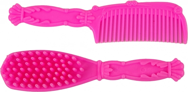 Konj je izdelan iz mehkega in prijetnega materiala ter zvesto posnema pravi videz živali. Paket vsebuje rožnato krtačo in glavnik za urejanje dolge konjske grive, kar otrokom omogoča razvijanje skrbi in odgovornosti.