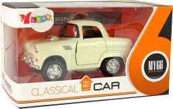 Klasičen kovinski avto v bež barvi s črnimi in srebrnimi detajli za realističen izgled.